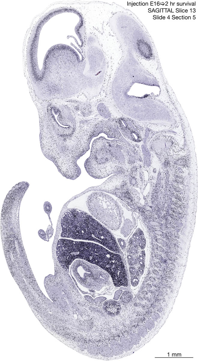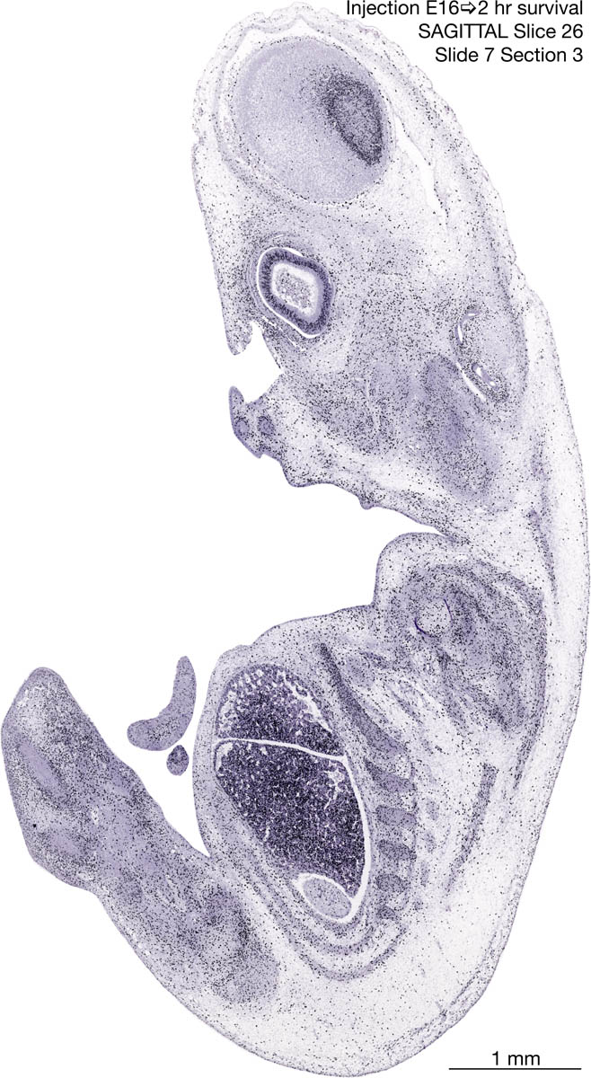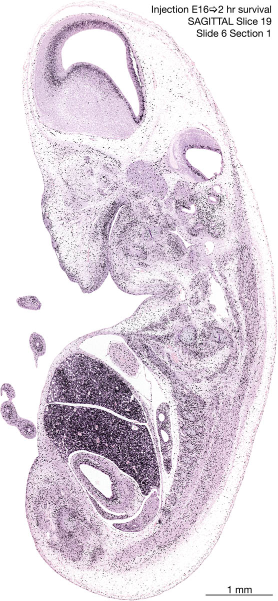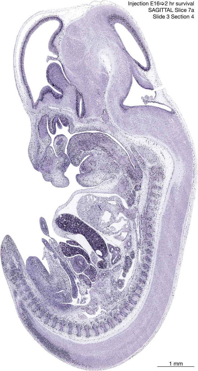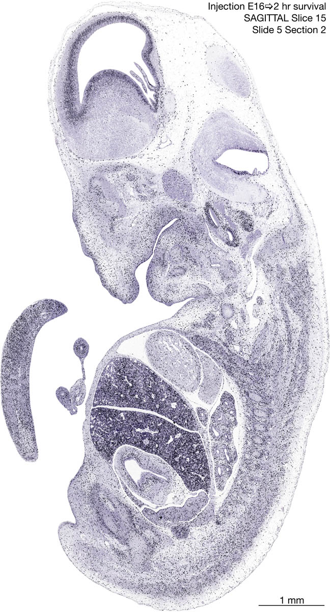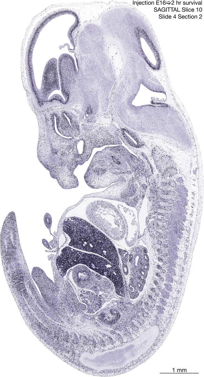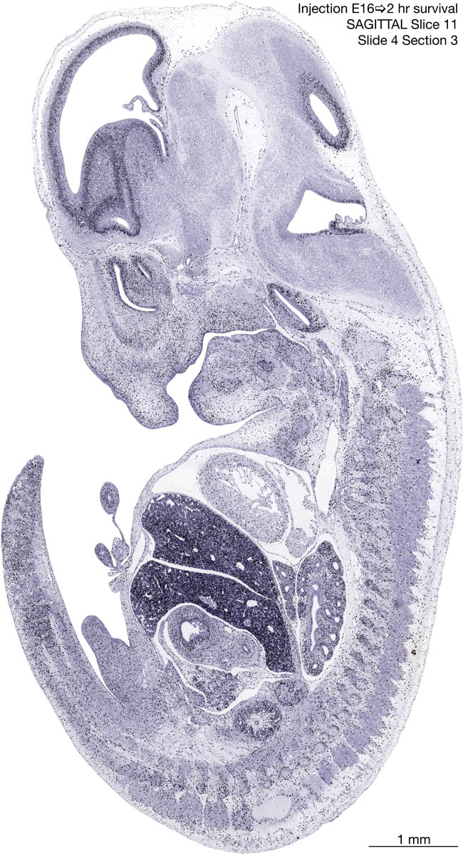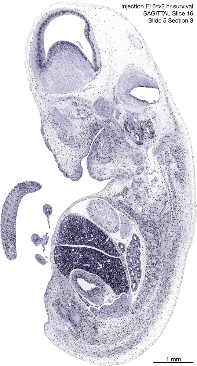 E16 2hr Survival Archived Images-Sagittal The following images are from a paraffin-embedded sagittally-sectioned E16 rat embryo exposed to tritiated thymidine 2 hours before death. Download: Large | High Res Download: Large | High Res Download: Large | High Res Download: Large | High Res Download: Large | High Res Download: Large | High Res Download: Large | High Res Download: Large | High Res Download: Large | High Res Download: Large | High Res Download: Large | High Res Download: Large | High Res Download: Large | High Res Download: Large | High Res Download: Large | High Res Download: Large | High Res Download: Large | High Res Download: Large | High Res Download: Large | High Res Download: Large | High Res Download: Large | High Res Download: Large | High Res Download: Large | High Res Download: Large | High Res Download: Large | High Res Download: Large | High Res Download: Large | High Res Download: Large | High Res Download: Large | High Res Download: Large | High Res Download: Large | High Res Download: Large | High Res Download: Large | High Res