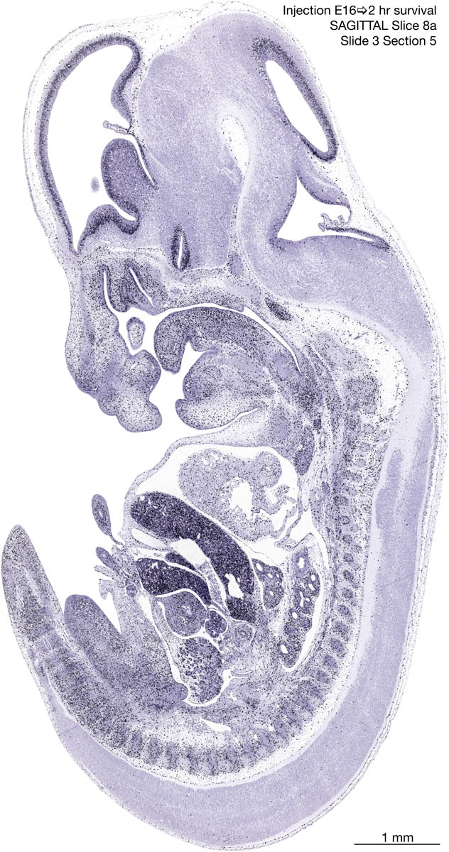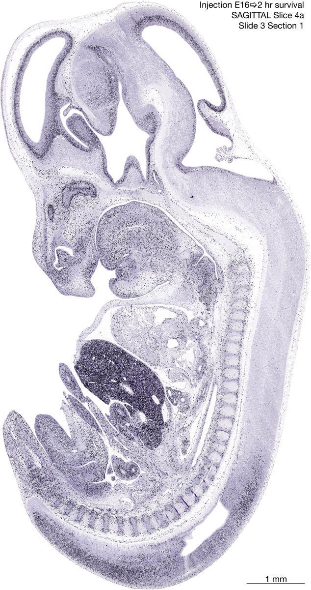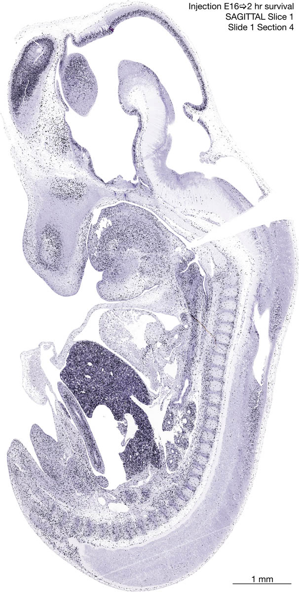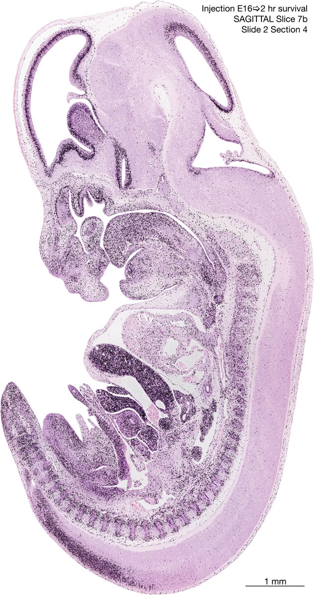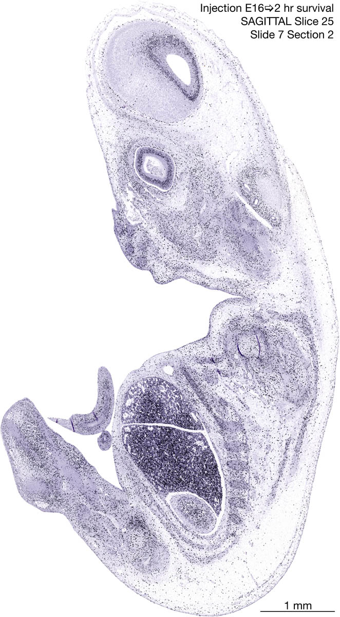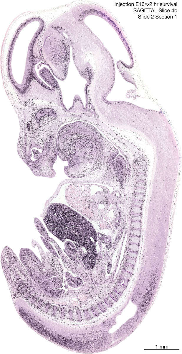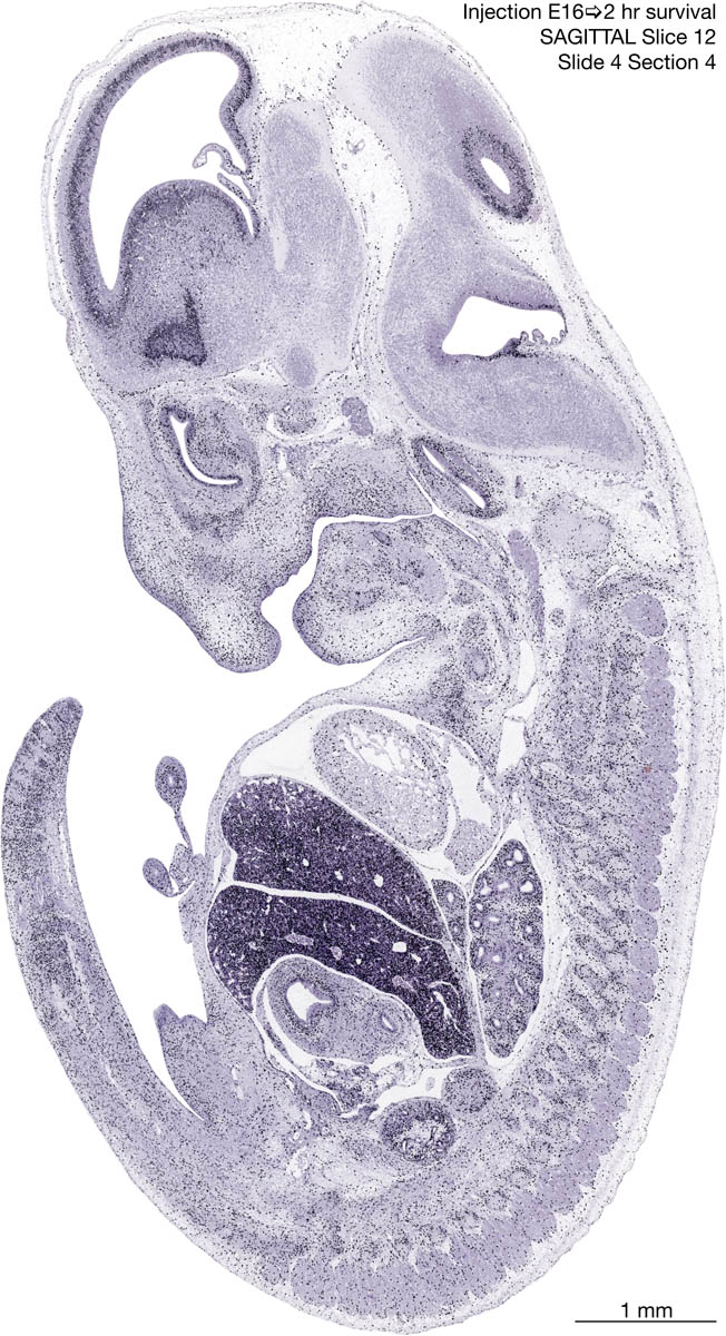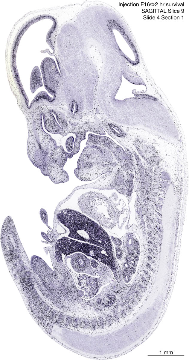 E16 2hr Survival Archived Images-Sagittal The following images are from a paraffin-embedded sagittally-sectioned E16 rat embryo exposed to tritiated thymidine 2 hours before death. Download: Large | High Res Download: Large | High Res Download: Large | High Res Download: Large | High Res Download: Large | High Res Download: Large | High Res Download: Large | High Res Download: Large | High Res Download: Large | High Res Download: Large | High Res Download: Large | High Res Download: Large | High Res Download: Large | High Res Download: Large | High Res Download: Large | High Res Download: Large | High Res Download: Large | High Res Download: Large | High Res Download: Large | High Res Download: Large | High Res Download: Large | High Res Download: Large | High Res Download: Large | High Res Download: Large | High Res Download: Large | High Res Download: Large | High Res Download: Large | High Res Download: Large | High Res Download: Large | High Res Download: Large | High Res Download: Large | High Res Download: Large | High Res Download: Large | High Res